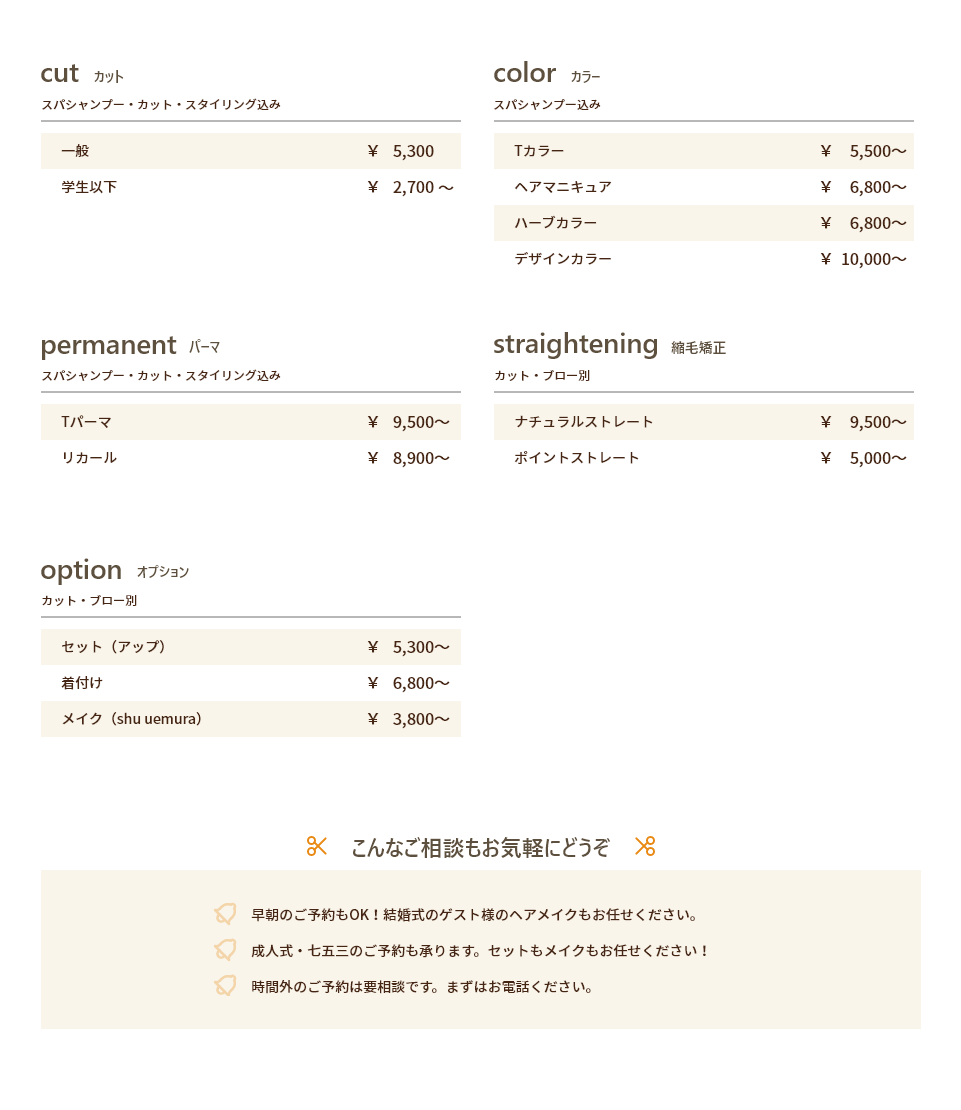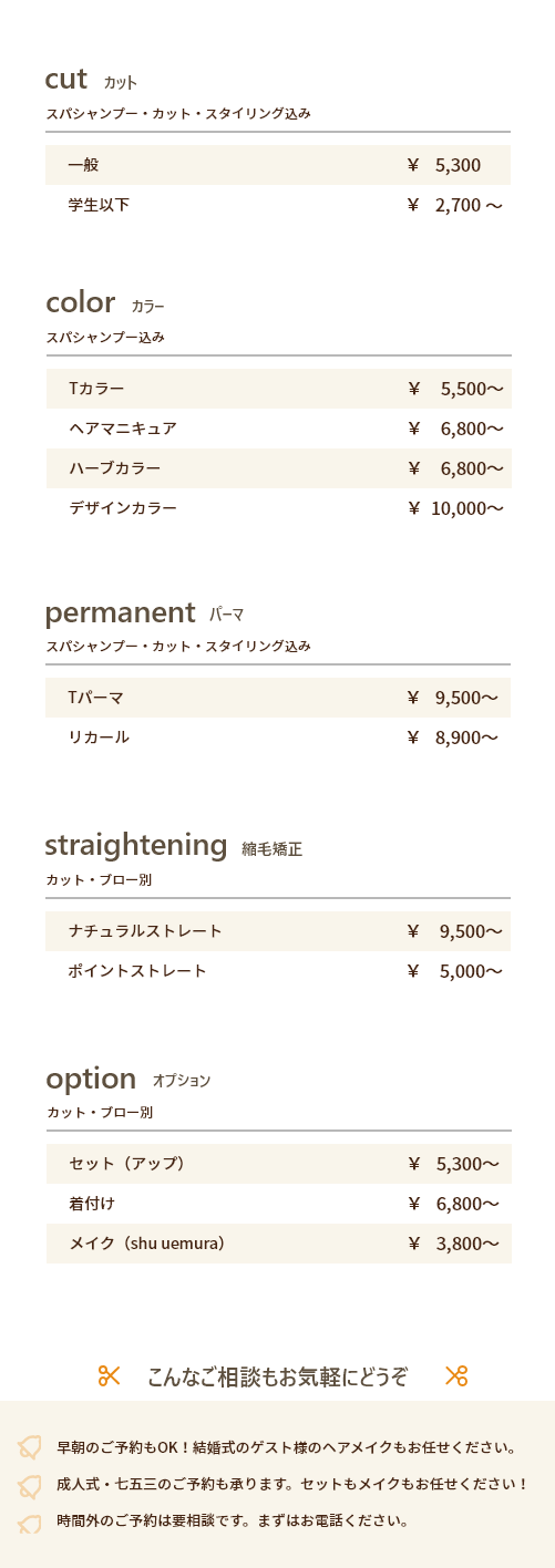 スタイルについてのお悩みお気軽にご相談ください。